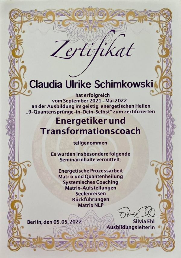 Freue mich sehr über dieses wunderschöne Zertifikat… - also es ist wirklich außergewöhnlich schön und spricht mein Herz und meinen künstlerischen Sinn an. Auch wenn wir unsere Qualifikationen schon längst nicht mehr aus Kursen oder von irgendjemandem im Außen erhalten müssen, tut es wirklich gut solche Möglichkeit und Inspiration zu nutzen. Insbesondere auch über einen längeren Zeitraum, kann ich an dieser Stelle wirklich empfehlen!