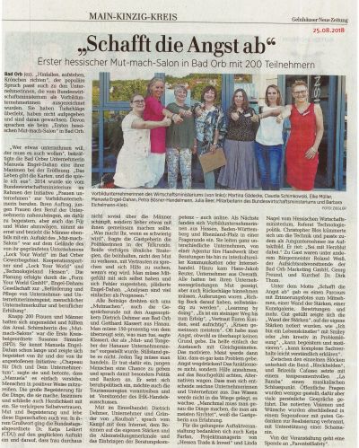 Die Initiative "schafft die Angst ab" - Mut MACH Salon von Vorbild Unternehmerin Manuela Engel-Dahin zog weite Kreise. Sogar Vorbild-Unternehmerinnen inklusive unserer Geschäftsführerin Claudia Schimkowski aus Baden-Württemberg waren angereist, um die Kollegin bei der Auftaktveranstaltung zu unterstützen.