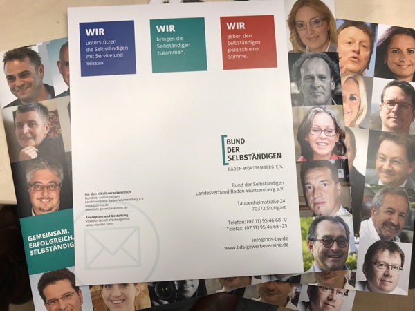Selbstverständlich da mitzumachen, oder? Für mich als ausgezeichnete VorbildUnternehmerin auf jeden Fall - heutzutage, jedoch sind die Menschen immer weniger bereit sich zu zeigen, sich zu engagieren, aus der Masse zu treten... Ich finde, wir sollten ALLE mit gutem Beispiel vorangehen. So schreibt der BdS: "Sie haben bei unserer Köpfe gesucht-Aktion mitgemacht ... Ganz herzlichen Dank für Ihre Bereitschaft, für den BDS Flagge bzw. Gesicht zu zeigen. Wir sind wirklich sehr erfreut, über die zahlreichen Fotos...