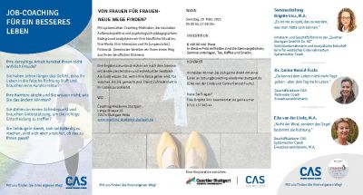 65 Prozent der Deutschen haben laut Umfragen einen Job, der nicht zu Ihnen passt. Ob auf der Suche nach einer sinnstiftenden Tätigkeit, einer neuen Herausforderung oder bei Entscheidungsschwierigkeiten: Das eintägige Seminar „Job-Coaching für ein besseres Leben“ schafft Klarheit für eine neue berufliche Zukunft. Veranstalter sind die renommierte Coaching-Akademie Stuttgart und Vorbildunternehmerin und systemischer Coach Brigitte Volz.