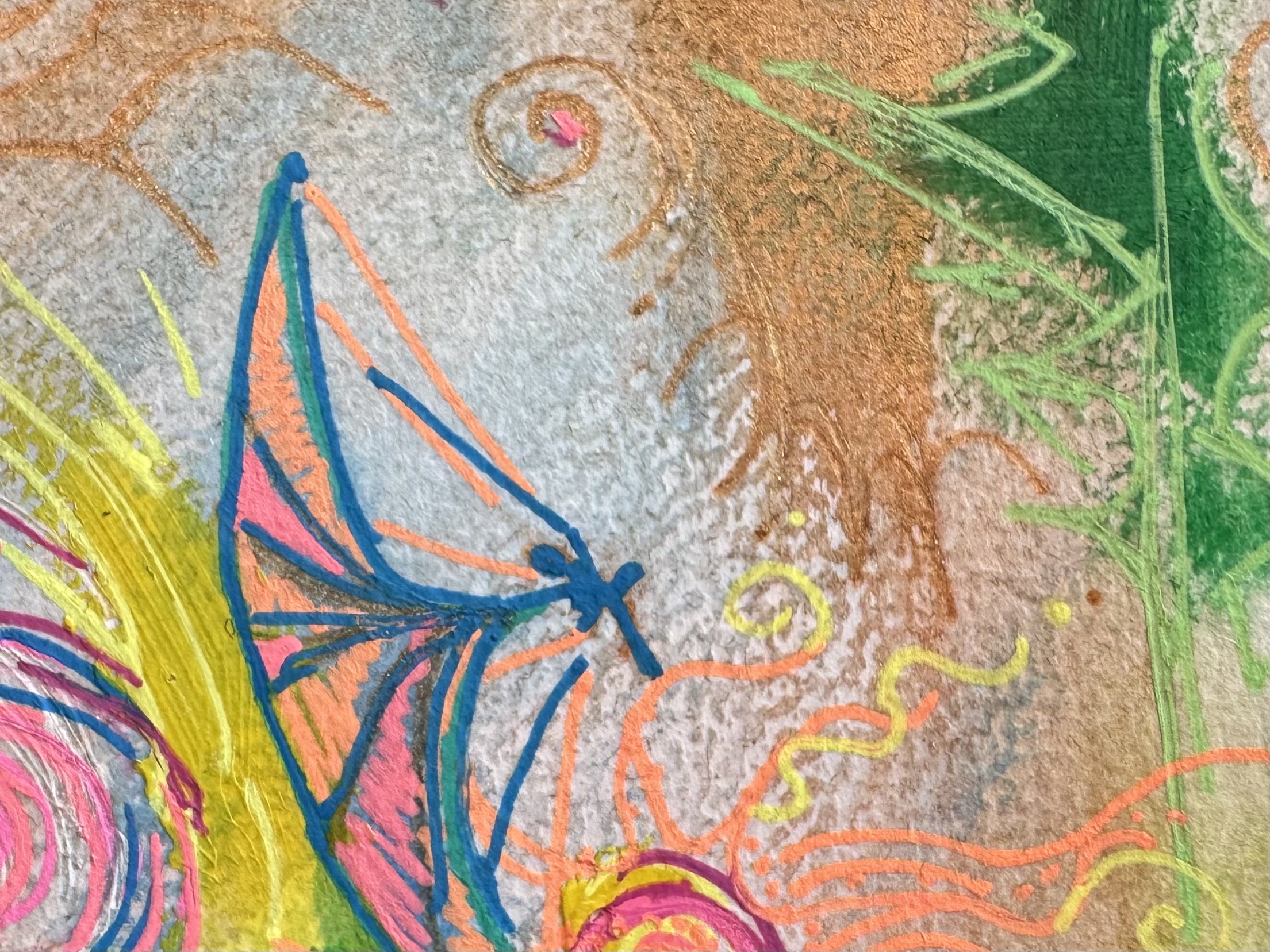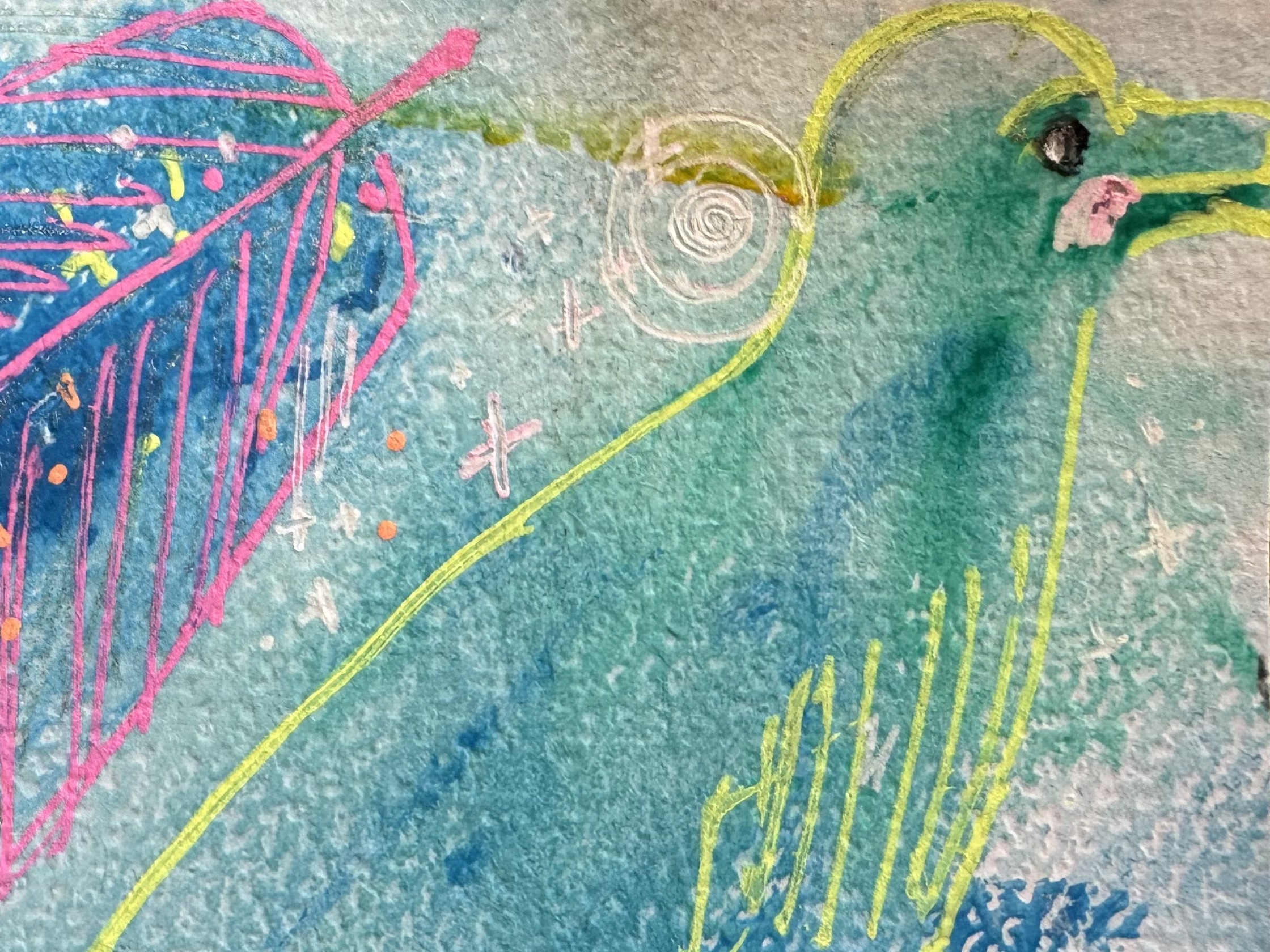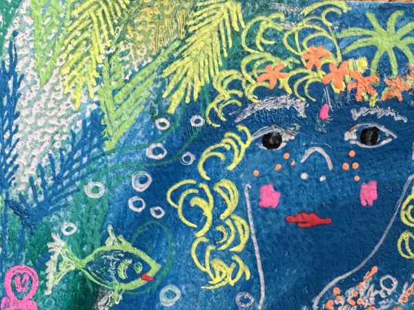 Im Prozess meiner schamanischen Heilarbeit male ich außerdem sogenannte Seelenbilder. Ich arbeite im sogenannten Materialmix, vorwiegend mit Acrylfarbe.
