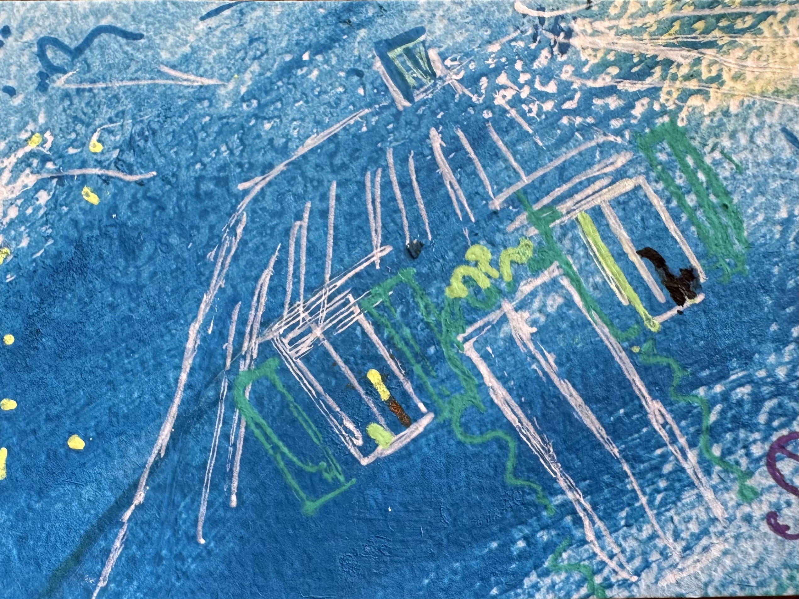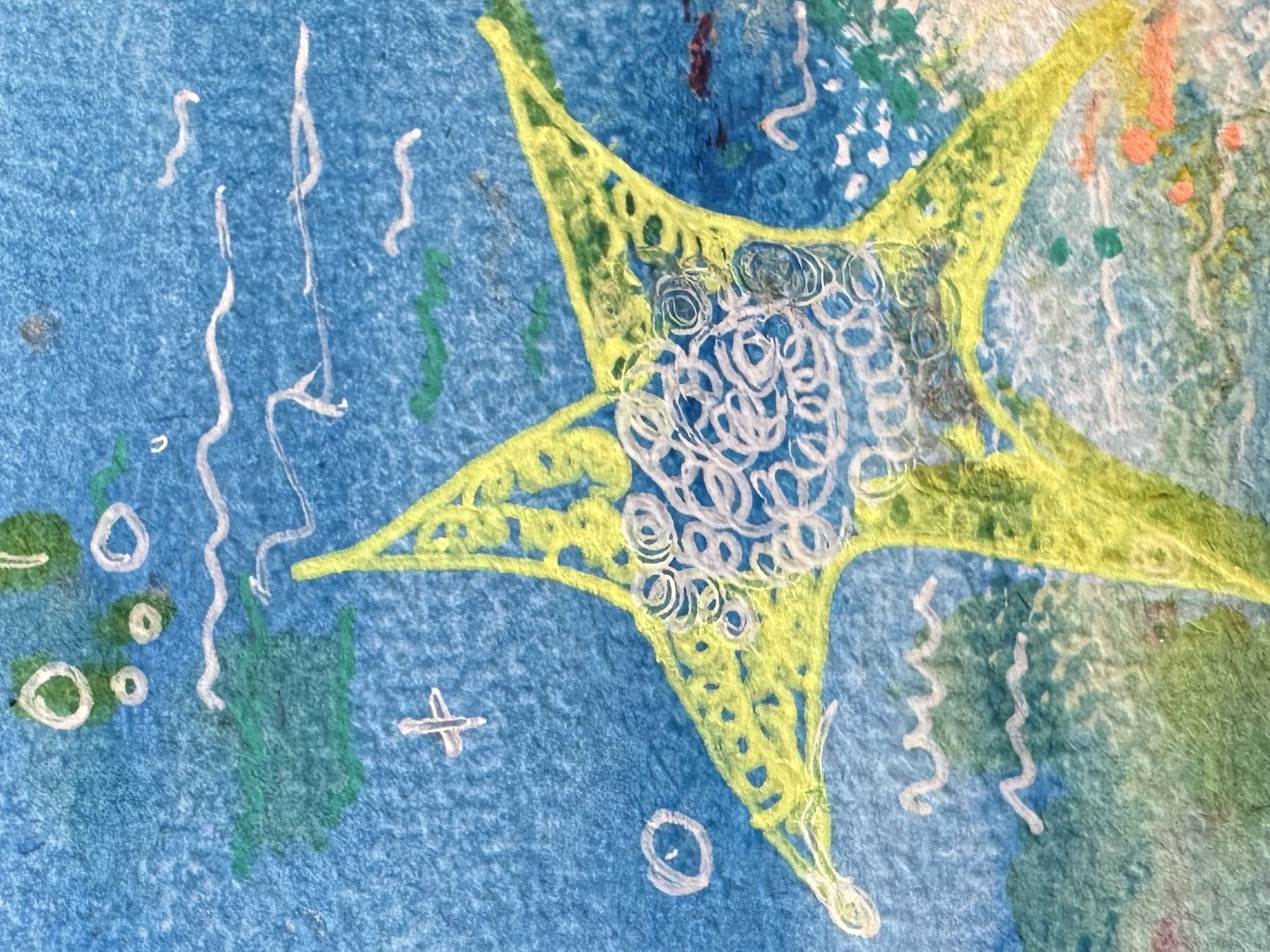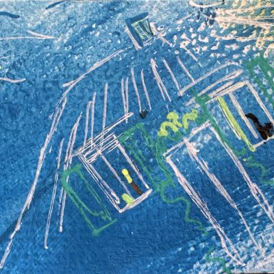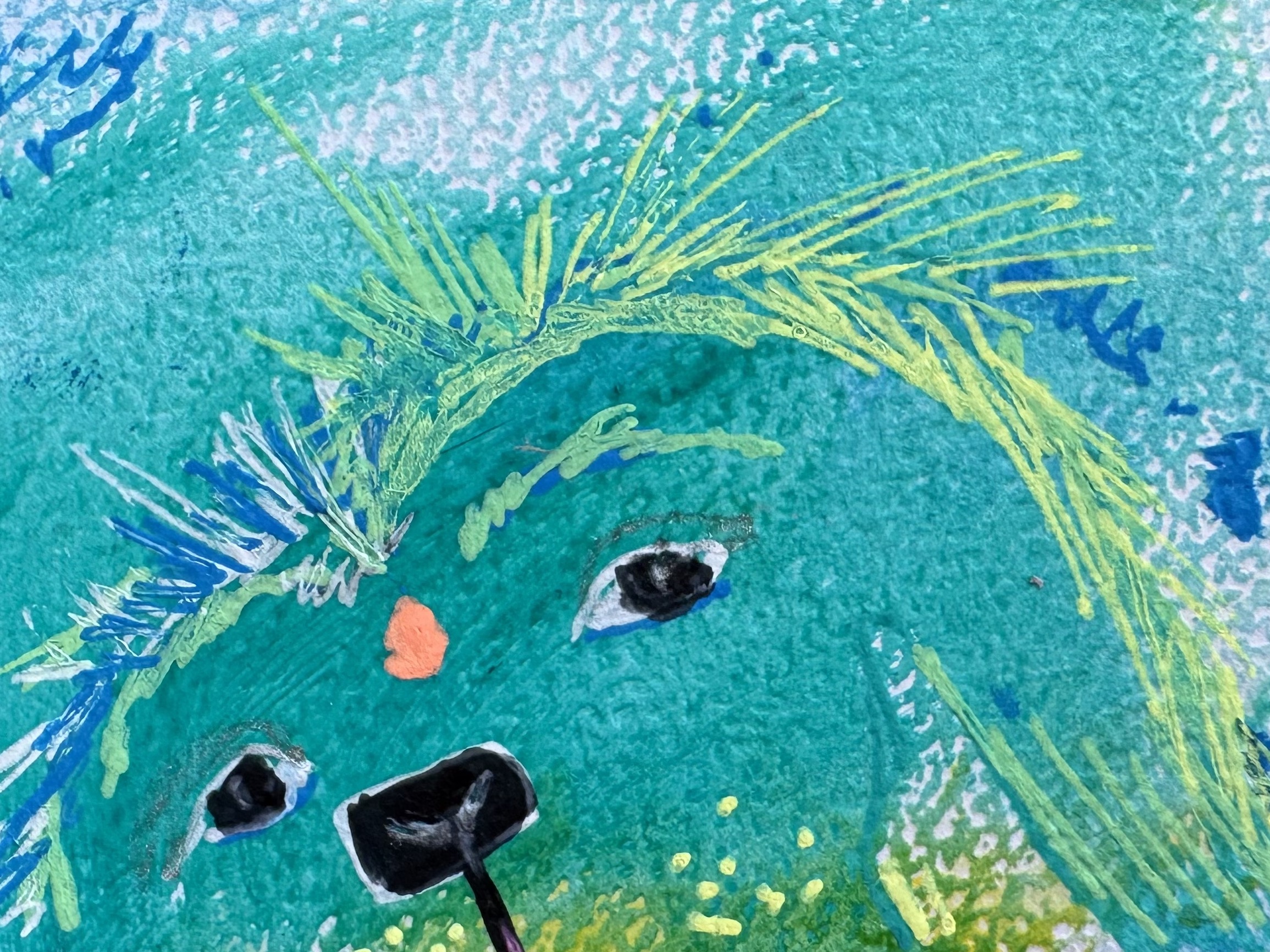 Im Prozess meiner schamanischen Heilarbeit male ich außerdem sogenannte Seelenbilder. Ich arbeite im sogenannten Materialmix, vorwiegend mit Acrylfarbe.