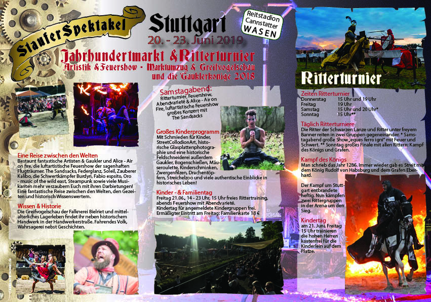 - 20. Juni - 23. Juni 2019: Stauferspektakel Jahrhundertmarkt, Stuttgart Reitstadion Bad Cannstatter Wasen www.jahrhundertmarkt-stuttgart.de