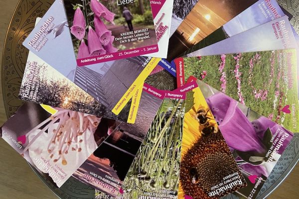 Erstmalig wurden die Qualitäten und Farben der Himmelsrichtungen als Leitsystem eingearbeitet. So kannst Du die Karten auch unterm Jahr für Deine Kartenarbeit nutzen und mit neuen Aspekten kombinieren. Auch eine Verwendung im Medizinrad oder mit den Karten "Medizinrad des Werdens" ist so einfach und intuitiv umsetzbar. Auf der Vorderseite (DINA6) findest Du ein farbstarkes Foto, die Rückseite ist mit einem Impuls und weiteren Details versehen. Eine wundervolle Inspiration, um tief in die Magie der Rauhnächte einzutauchen, wie die kostenlose Facebook-Gruppe zum Austausch und Miteinander heißt.