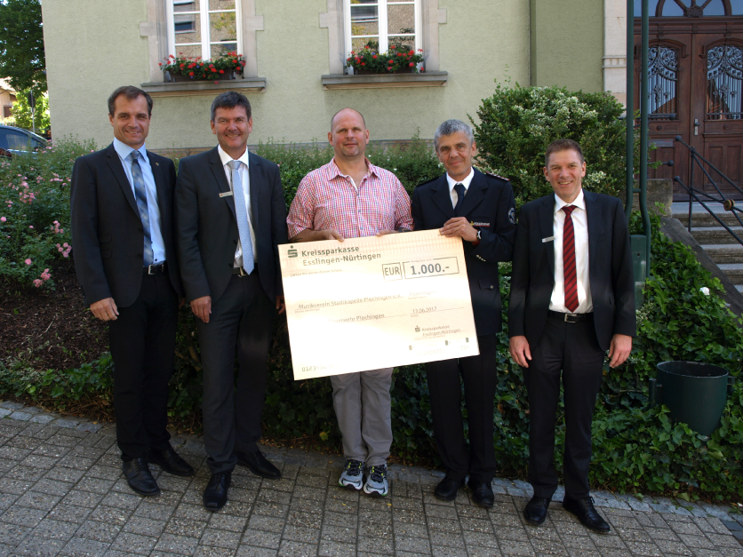 Bürgermeister Frank Buß, Wolfgang Wimmer Vertriebsdirektor Privatkunden Neckar-Fils, Martin Laukmichel Jugendleiter Musikverein Stadtkapelle Plochingen, Michael Fuchs Kommandant Freiwillige Feuerwehr Plochingen, Rüdiger Scharpf Teamleiter Geschäftskunden Neckar-Fils
