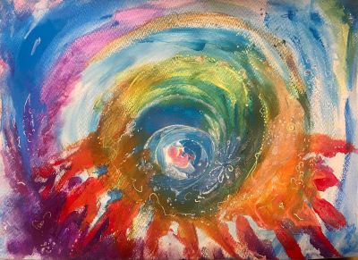 Im Prozess meiner schamanischen Heilarbeit male ich außerdem sogenannte Seelenbilder. Ich arbeite im sogenannten Materialmix, vorwiegend mit Acrylfarbe.