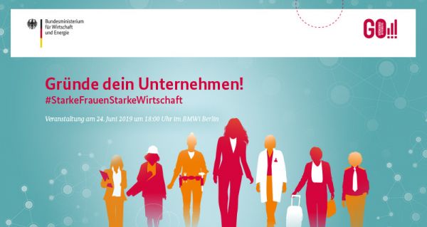 Bei der Veranstaltung Gründe dein Unternehmen! #StarkeFrauenStarkeWirtschaft am 24. Juni 2019 ab 18.00 Uhr stehe ich als Vorbild-Unternehmerin der BMWi-Initiative „FRAUEN unternehmen“ für individuelle Gespräche („Speed-Dating“) zur Verfügung.